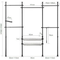 SoBuy Cabina Armadio Guardaroba Componibile, Altezza E Lunghezza Regolabile Altezza :200-270 Cm Nero KLS04-SCH