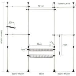 SoBuy Appendiabiti Telescopico, Scaffale Telescopico, Set Telescopico,Altezza Regolabile,FRG38