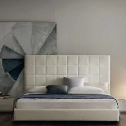 Testiera Effetto Doga 240 Cm In Legno Chiaro E Ripiani Bianchi AVA