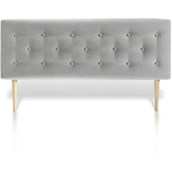 Testiera Di Tessuto Oslo 90×100 Cm, Grigio, Gambe Di Legno, Kit Montaggio Incluso