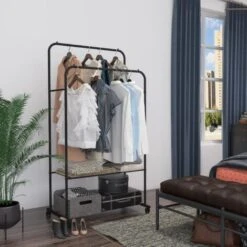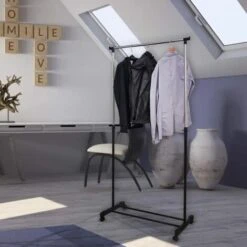 Stand Appendiabiti Con Ruote Appendiabiti Armadio Aperto Metallo Da Terra Porta Abiti Camera Nero