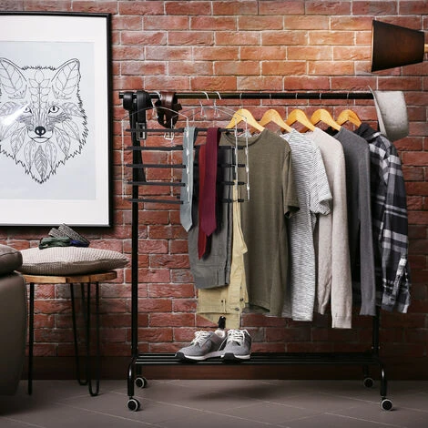 Grazie a questo stabile appendiabiti multiplo in ferro cromato troverai un alleato che ti aiuterà a risparmiare spazio nell’armadio. La gruccia per pantaloni dispone di 4 aste che si lasciano estrarre singolarmente. Il vantaggio è che non c’è bisogno di tirare fuori la gruccia dall’armadio. Le barre sono rivestite di gommapiuma nera che non permette ai pantaloni o gonne di scivolare – davvero pratico!