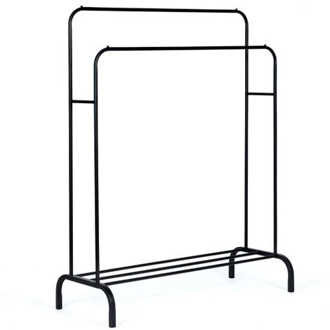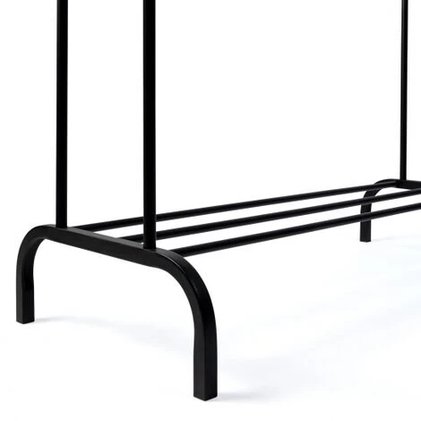 Sarà perfetto in una camera da letto, in una lavanderia o in uno spogliatoio. È lo scaffale ideale se avete bisogno di un mobile che sia estetico e pratico al tempo stesso.Sarà perfetto in una camera da letto, in uno spogliatoio o in una lavanderia e darà un tocco decorativo in più.Con la doppia barra portaoggetti da 115 cm e il ripiano inferiore, questo appendiabiti offre molteplici possibilità di stoccaggio. Le sue due barre consentono di appendere il doppio di abiti, cappotti e giacche senza che tocchino il pavimento grazie alla sua altezza di 150 cm. Il ripiano in filo metallico consente di riporre scarpe e scatole per ordinare e organizzare i propri oggetti.Stabile e robusto, l’armadietto PETER 150 cm è realizzato in metallo (spessore dei tubi quadrati 2,5 cm x 0,7 cm). È dotato di 4 cuscinetti antiscivolo per garantire la stabilità.Approfittate del suo basso prezzo per organizzare facilmente i vostri vestiti!Dimensioni dell’appendiabitiDimensioni d’ingombro: lunghezza 115 x larghezza 50 x altezza 150 cmAltezza dei due ripiani: 130/150 cmDistanza tra i due ripiani: 25 cmLunghezza dei ripiani: 115 cmDimensioni del contenitore per scarpe: 50 x 19 cm4 cuscinetti antiscivolo inclusiCapacità di ogni rack: 15 kgCapacità della scarpiera: 20 kgTrovate tutti i nostri scaffali e i mobili da ingresso nel nostro negozio online