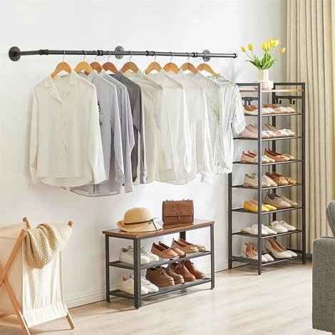 - La rotaia per abbigliamento in stile industriale conferisce al tuo guardaroba un aspetto semplice ed elegante e può aiutarti a mantenere il tuo guardaroba pulito e organizzato.