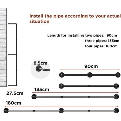 - Alta qualità, realizzato con tubi metallici in stile industriale, l’asta appendiabiti da parete è robusta e resistente, difficile da deformare. Grazie al trattamento galvanico, non ci sono irregolarità o graffi.