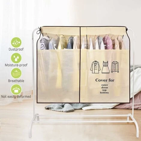 DIMENSIONE PERFETTA – 110 x 120 cm, può coprire completamente il rack standard. Una copertura ideale per camera da letto, balcone, spogliatoio per proteggere i vestiti dalle intemperie.
