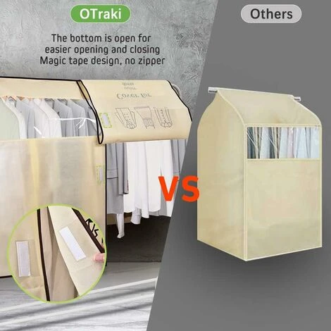 CHIUSURA CON NASTRO MAGICO – La chiusura del parapolvere è un nastro magico, si attacca saldamente, puoi facilmente trovare ed estrarre i vestiti. Ottima copertura protettiva per appendiabiti.