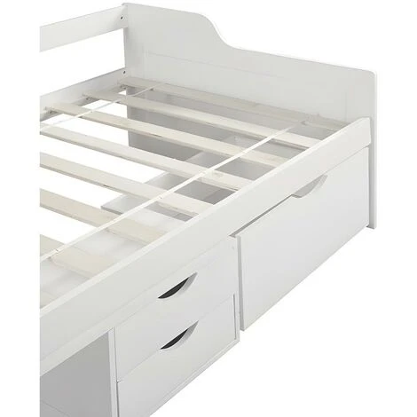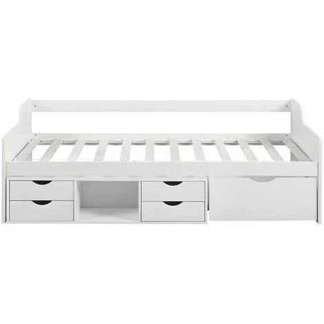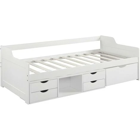 Con le sue linee graziose e i numerosi scomparti, il divanetti letto ADELISE farà la felicità di piccoli e grandi. Realizzato in abete e MDF, dispone di 5 cassetti che ti permettono di sistemare velocemente tutti i tuoi oggetti. Trasforma questo divanetto letto dotandolo di qualche cuscino.