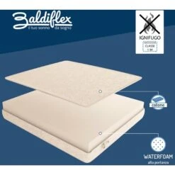 Innovativo Materasso Evergreenweb in Waterfoam alto 16 cm senza aggiunta di CFC. Ecologico ed anallergico, prodotto nel rispetto dell’ambiente in quanto schiumato ad acqua senza l’utilizzo di sostanze chimiche nocive. La sua elasticità e consistenza garantiscono il sostegno adeguato alla colonna vertebrale e contribuiscono a mantenere una posizione corretta durante il riposo. Il Materasso è indeformabile e risponde in modo eccezionale alle migliaia di sollecitazioni causate dal nostro continuo movimento durante il sonno. Inoltre è estremamente consigliato per tutte quelle persone che sono affette da allergie alla polvere e agli acari. Il rivestimento esterno è in cotone e poliestere antiacaro e anallergico. L’imbottitura è in fibra anallergica.