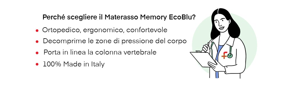 - MEMORY BLU COMFORT:Â Questo materasso contiene al suo interno il nuovissimo memory foam BLU che dona un effetto rigenerate, rinfrescante e confortevole.