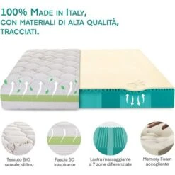 Farmarelax – Primo Materasso Green in Italia – h23 cm – memory foam – rivestimenti in lino – sfoderabile