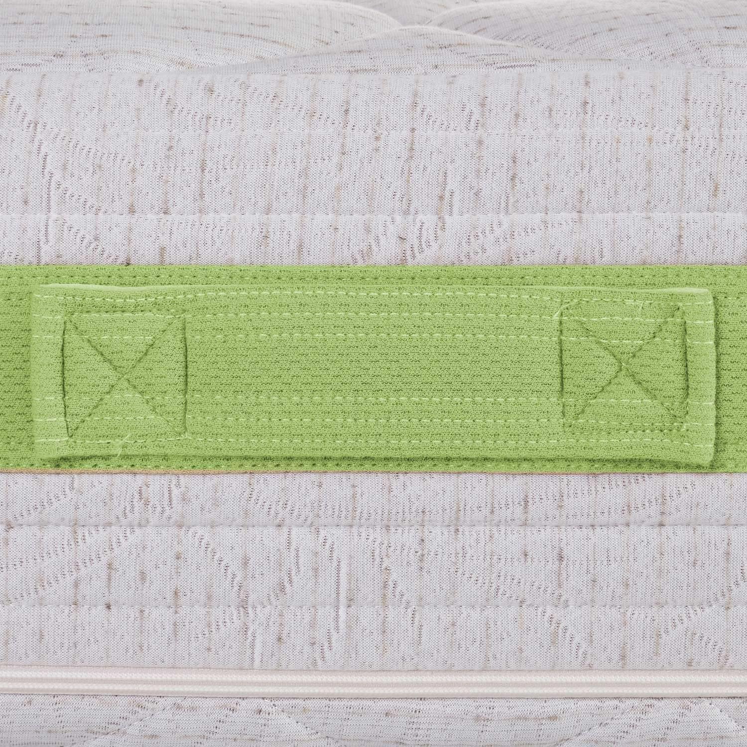 La nostra formula sostenibile non intacca in alcun modo il comfort, che resta sempre la qualità principale di tutti i nostri prodotti. Greta presenta un morbido rivestimento ipoallergenico in Tessuto BIO naturale in Lino e perimetralmente una fascia 5D traspirante dotata di maniglie, che ne facilitano lo spostamento.