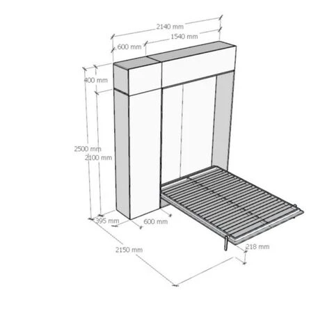 dimensione del letto chiuso: Larghezza 154 cm / Profondita’ 39.5 cm / Altezza 210 cm