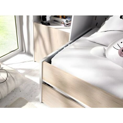 Stai cercando un letto pratico per la camera dei bambini? Il letto a scomparsa SELENA saprà rispondere a tutte le tue esigenze! Grazie al ponte, questo letto offre diversi vani portaoggetti che ti permettono di organizzare facilmente il guardaroba nonché i giochi dei tuoi bambini. Inoltre, la funzione letto a scomparsa ti permette di passare facilmente da 1 a 2 posti letto tirando il cassetto nascosto sotto il letto.