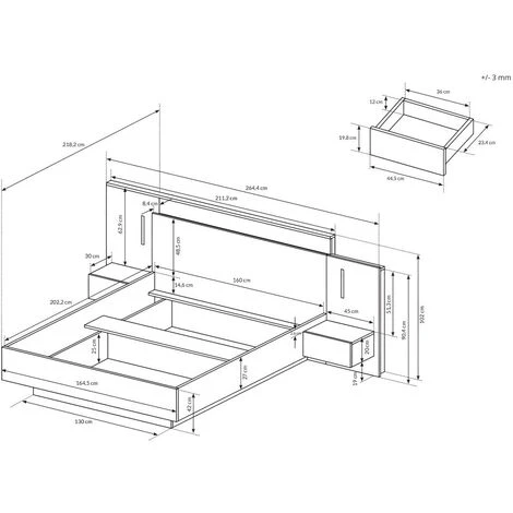 - Il letto è compatibile con tutti i materassi e le reti da 160 x 200 cm