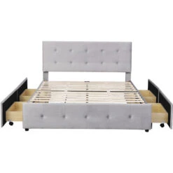 【Letto con cassetti】Questo giroletto in tessuto è dotato di 4 cassetti con rotelle lisce, perfetti per riporre cianfrusaglie extra. Spazio di archiviazione aggiuntivo per una facile conservazione