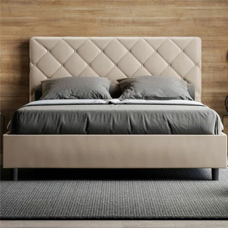 Infine la testata è decorata con bottoni ed una fantasia a rombi, ed ha uno spessore di 11 cm. Letto matrimoniale con contenitore 100% Made in Italy, realizzato con materiali e design esclusivamente italiani. Compreso di rete e contenitore.