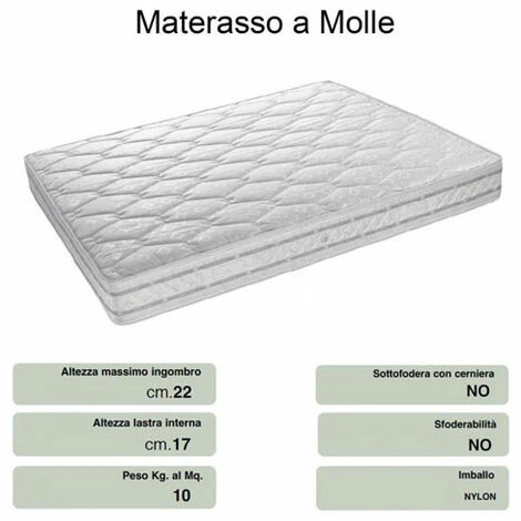 Materasso a Molle Indeformabile. Un materasso a molle tradizionali, che garantisce rigidità e flessibilità. Una struttura di efficacia testata e comprovata nel tempo, ora supportata da nuove tecnologie. Il tessuto di alta qualità e il molleggio con molle biconiche ad alta portanza favoriscono un riposo salutare e confortevole. Composizione: