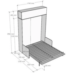 Dimensioni del letto chiuso: L.174 P.105 H.210 cm.