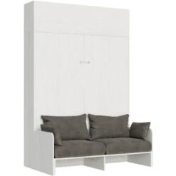 La composizione è proposta con letto a parete a scomparsa verticale Kentaro matrimoniale con divano Sofà e una capiente e spaziosa pensile appartenente alla linea Isoka.