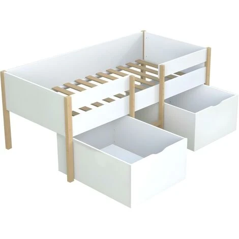 Dotato di 2 grandi cassetti, il letto mezza altezza SISSY ti sorprenderà con la sua modernità e la sua praticità!