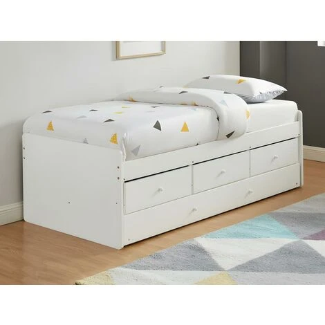 Con il suo stile dallo charme vintage, il letto TITOUAN non mancherà di sorprenderti. Dotato di 3 cassetti potrai trovare posto a tutti gli oggetti dei tuoi piccoli. Inoltre, ti basterà aprire il cassetto in basso per far apparire un secondo letto, ideale per una serata pigiama party!