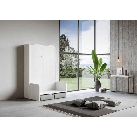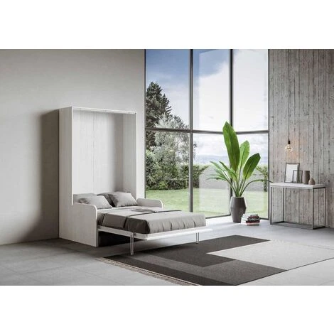 Letto alla francese a scomparsa Kentaro. Chiusura verticale. Sei cuscini.