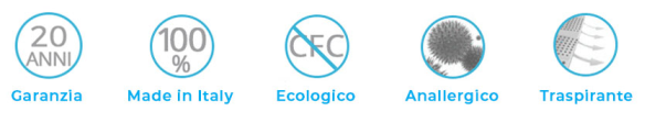 I nostri materassi sono fabbricato al 100% in italia unicamente con materiali italiani certificati.L’esperienza della manifattura italiana è riconosciuta in tutto il mondo come un eccellenza. Investiamo tutti i giorni nelle nuove tecnologie per garantire la qualità del riposo dei nostri clienti. Grazie alla grande organizzazione e la qualità elevata, siamo in grado di produrre decine di migliaia di prodotti giornalmente che possiamo spedire in tempi brevi.