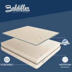 Il cuore del materasso pieghevole Smart è una lastra alta 10 centimetri in Waterfoam, un materiale innovativo ed ecologico. à indeformabile e recupera rapidamente la forma originaria dopo le sollecitazioni.