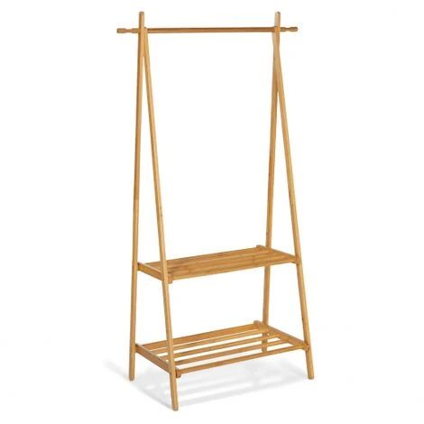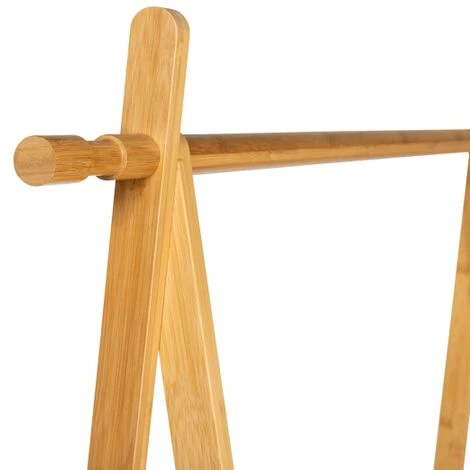 Pratica e funzionale, la porta d’ingresso triangolare in bambù RITA è dotata di un’ampia barra appendiabiti che consente di posizionare le grucce su tutta la sua lunghezza.La sua forma triangolare consente un sostegno ottimale delle grucce per evitare che scivolino sui lati. Si possono facilmente appoggiare i vestiti e gli accessori senza che si stropiccino.L’altezza di 159 cm di questo scaffale consente di riporre facilmente giacche, cappotti, camicie e altri vestiti. Molto funzionale grazie ai tappi all’estremità dello scaffale, che consentono di appendere borse e sciarpe.Se si desidera risparmiare spazio, è possibile ripiegare il portapacchi in modo semplice e veloce grazie alla sua ingegnosa struttura.Vi piacerà il suo aspetto multifunzionale grazie al doppio ripiano, dove potrete riporre scatole, cestini o direttamente le scarpe. Posizionate i vostri maglioni o un cestino per accedere facilmente ai vostri accessori preferiti.L’aspetto sobrio e naturale della porta d’ingresso in bambù RITA la rende versatile: si adatta a qualsiasi ambiente in cui viene collocata. È molto utile nell’ingresso, ma diventa subito indispensabile nella camera da letto. Se state cercando un appendiabiti per la camera da letto, questo elegante modello in legno chiaro aggiungerà un tocco trendy e naturale al vostro arredamento.Sarà un’ottima aggiunta al vostro arredamento!Dimensioni dell’appendiabiti- Dimensioni complessive: lunghezza 89 cm x larghezza 43 CM x altezza 159 CM- Lunghezza della barra di sospensione: 69,5 CM- Materiale: bambù- Colore: naturale
