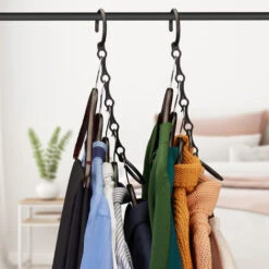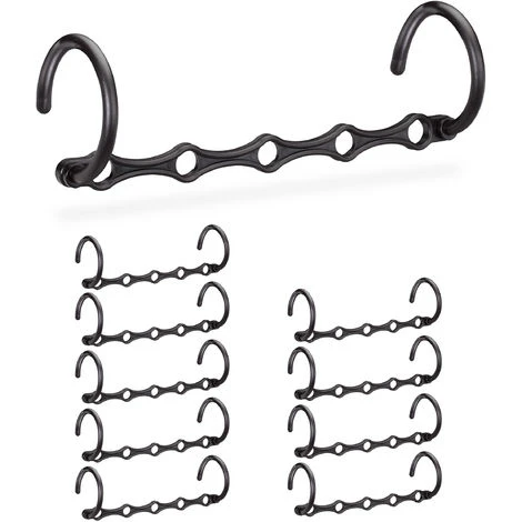 Il vostro armadio è ancora una volta stracolmo di indumenti? Le grucce si incastrano le une nelle altre e non è più possibile capire su quale gruccia è appeso ogni singolo indumento? Con questo set da 5 grucce multiple avrete finalmente ordine nel guardaroba. Ciascun supporto appendiabiti dispone di 2 ganci mobili che consentono di utilizzarlo in svariati modi. Sistemandoli in verticale, ad esempio, si riesce ad utilizzare al meglio lo spazio disponibile nell’armadio. Su ciascuna delle 10 grucce multiple si possono appendere fino a 5 grucce normali.