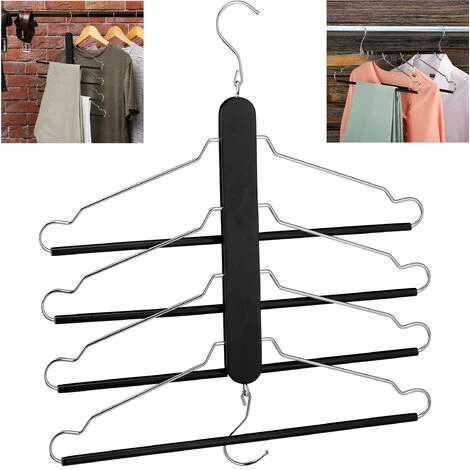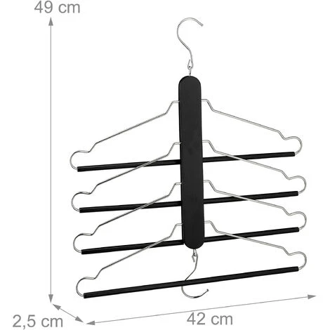 Il vostro armadio è ancora una volta stracolmo di indumenti? Le grucce si incastrano le une nelle altre e non è più possibile capire su quale stampella è appeso ogni singolo indumento? Grazie a questa gruccia multipla finalmente potete fare ordine ed avere una visuale organizzata del vostro armadio. L’appendino dispone di 2 ganci mobili, che consentono di usarlo in svariati modi. Appendete la stampella in verticale o in orizzontale per utilizzare lo spazio disponibile nell’armadio. Le 4 grucce sono girevoli e mantengono la posizione desiderata, niente di più pratico!