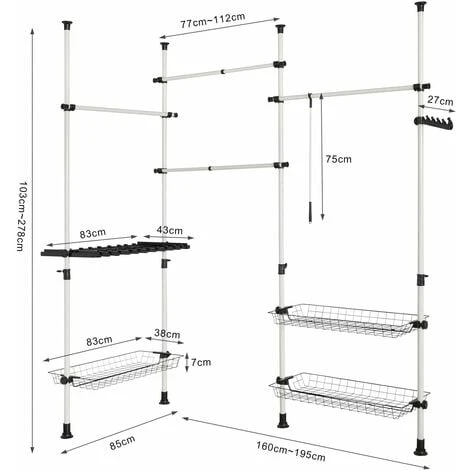 - Altezza regolabile: 103~278 cm;Lunghezza: 160~195 cm + 85 cm