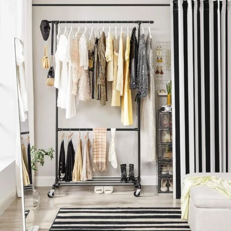 Per una qualità costruttiva eccezionale, un’elevata capacità di carico e una comoda mobilità, non devi cercare altro che l’Appendiabiti a Doppia Barra in Stile Industriale SONGMICS.
