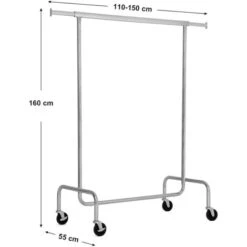 - Elevata capacità di carico e buona stabilità – Rispetto al tubo tondo, la barra rettangolare superiore ha una capacità di carico superiore e può sopportare un carico uniforme fino a 130 kg, è stabile e non oscilla. La barra estensibile (lunghezza: 110-150 cm) consente di appendere un maggior numero di vestiti