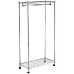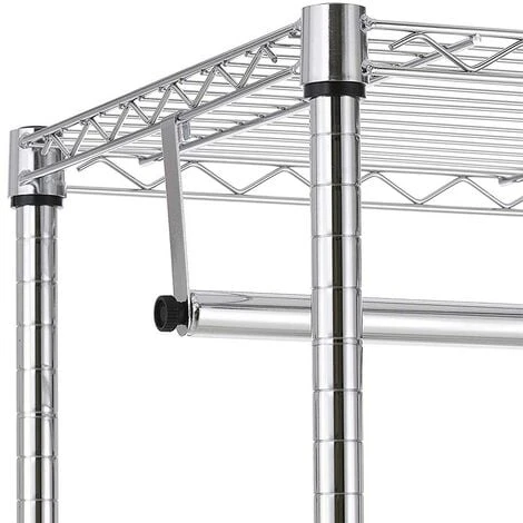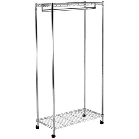 Dotato di solida struttura in acciaio inox con finitura cromata più stabile solida e resistente, ottima capacità di carico con asta appendi grucce e ripiano d’appoggio inferiore.