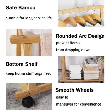 UNHO Appendiabiti da Terra in bambu, Appendiabiti con Ripiani Appendiabiti Ingresso Stand Appendiabiti da Ingresso Servo muto da Camera Soggiorno