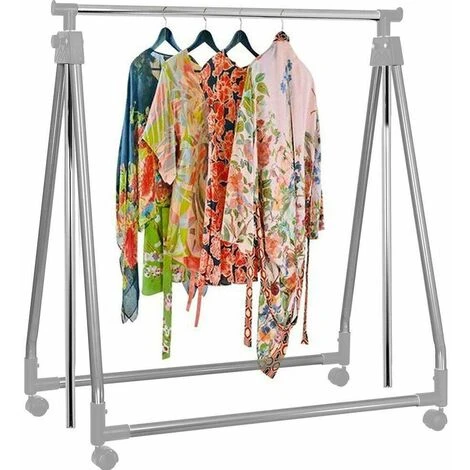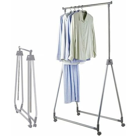 1 x Stand Appendiabiti Pieghevole Acciaio Asta Allungabile Regolabile Ruote Grigio
