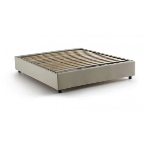 STRUTTURA – La struttura del letto è in fibra di legno rialzata da terra con piedini in ABS: il giroletto è rivestito in morbido tessuto di poliestere sfoderabile e lavabile in lavatrice a 30° – La rete a doghe in legno multistrato è inclusa nella struttura – Meccanismo di apertura in ferro – L’aggiunta del pratico box contenitore salvaspazio permette al letto di trasformarsi in uno spazioso cassone per lenzuola, cuscini e piumoni.