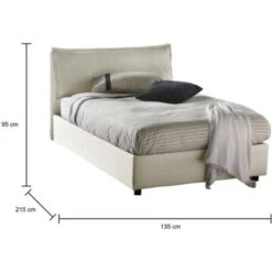 MISURE E APERTURA – Dimensioni letto: Lunghezza 215 x Larghezza 135 x Altezza 95 cm (altezza rete da terra: 32cm) – Apertura contenitore: frontale – Profondità contenitore: 20 cm circa – Altezza dei piedi: 10 cm circa – Fondo del letto in nobilitato con spessore di 1 cm – Adatto per materasso di dimensione: 120×200 cm – Materasso non incluso