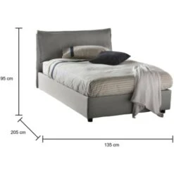MISURE E APERTURA – Dimensioni letto: Lunghezza 205 x Larghezza 135 x Altezza 95 cm (altezza rete da terra: 32cm) – Apertura contenitore: frontale – Profondità contenitore: 20 cm circa – Altezza dei piedi: 10 cm circa – Fondo del letto in nobilitato con spessore di 1 cm – Adatto per materasso di dimensione: 120×190 cm – Materasso non incluso