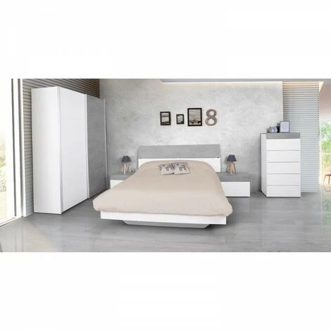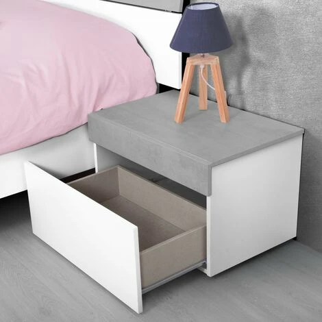 Si tratta di un set composto da una testiera del letto e due comodini. È possibile utilizzarlo con letti da 135 cm o 150 cm, ma può essere utilizzato anche con letti più grandi posizionando i comodini distanziati esternamente dalla testiera. La testiera non ha bisogno di essere appesa perché ha le gambe in ABS.