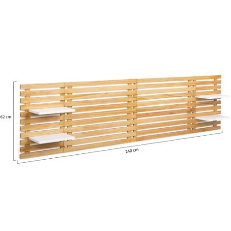 Testiera Effetto Doga 240 Cm In Legno Chiaro E Ripiani Bianchi AVA