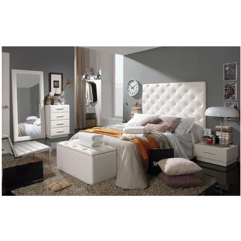 Testiera imbottita arricchita con capitonné con trama a rombi. Finitura in similpelle.