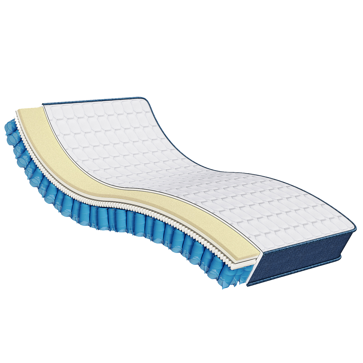 【Schiuma di memoria】 — Schiuma di memoria (conosciuta anche come schiuma a molla lenta). Il vantaggio con il materiale della schiuma di memoria è che quando si applica la pressione, le cellule della schiuma distribuiscono rapidamente la pressione dell’aria e quindi non tornano alla loro posizione originale in fretta. Questo porta a un migliore comfort quando ci si sdraia su tali materassi, poiché la pressione sui punti di pressione del corpo è ridotta.