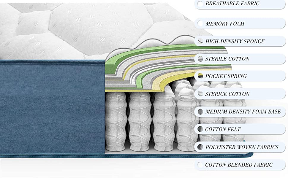 【Materasso ultra silenzioso】 — Built-in di alta qualità individuale tasca primavera e molla lenta schiuma posteriore, può efficacemente assorbire il rumore e la vibrazione causata da rigirarsi e girare quando il sonno, non svegliare dal rumore, non disturbare compagno e ridurre efficacemente i vostri tempi di rotazione, ti permettono di dormire sonni tranquilli e pacifici.