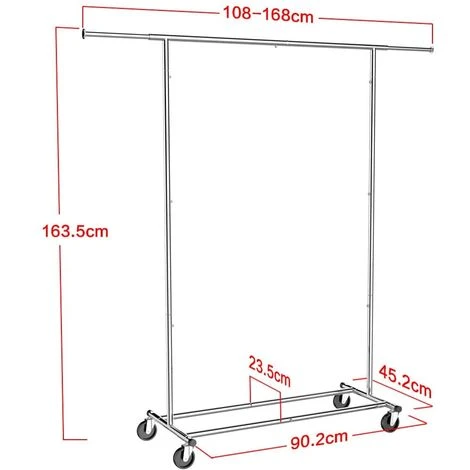 - 4 Ruote Orientabili: l’appendiabiti è dotato di 4 ruote girevoli a 360° che consentono di spostare il stand porta abiti al posto desiderato e facilitare il trasporto di abiti, due rotelle sono bloccabili per mantenere l’appendiabiti in posizione e aggiungere la stabilità.